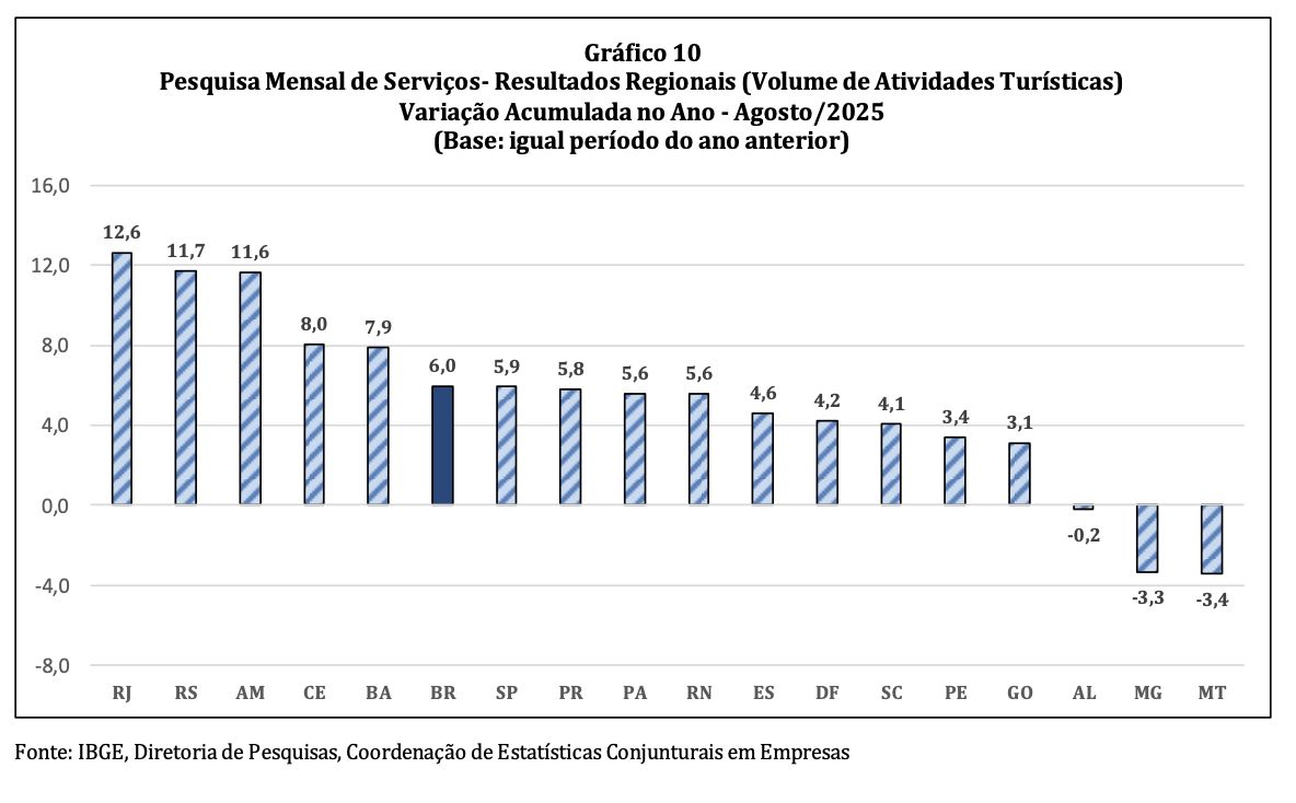 O crescimento da atividade turística no Estado em 2025 é de 11,6%, o terceiro maior índice entre os estados pesquisados pelo IBGE.