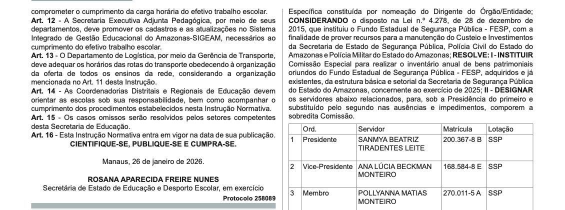 O Sindicato dos Trabalhadores em Educação do Amazonas (Sinteam) informou em suas redes sociais na internet que ingressou com representação no Ministério Público do Estado (MPAM) contra a Instrução Normativa nº 02/2026 da Secretaria de Estado de Educação do Amazonas (Seduc), que, de acordo com sua avaliação, aumenta a carga horária dos seus associados.